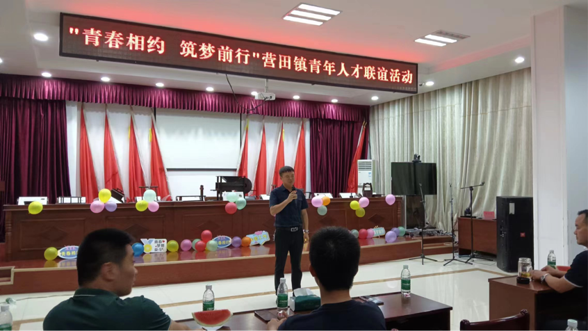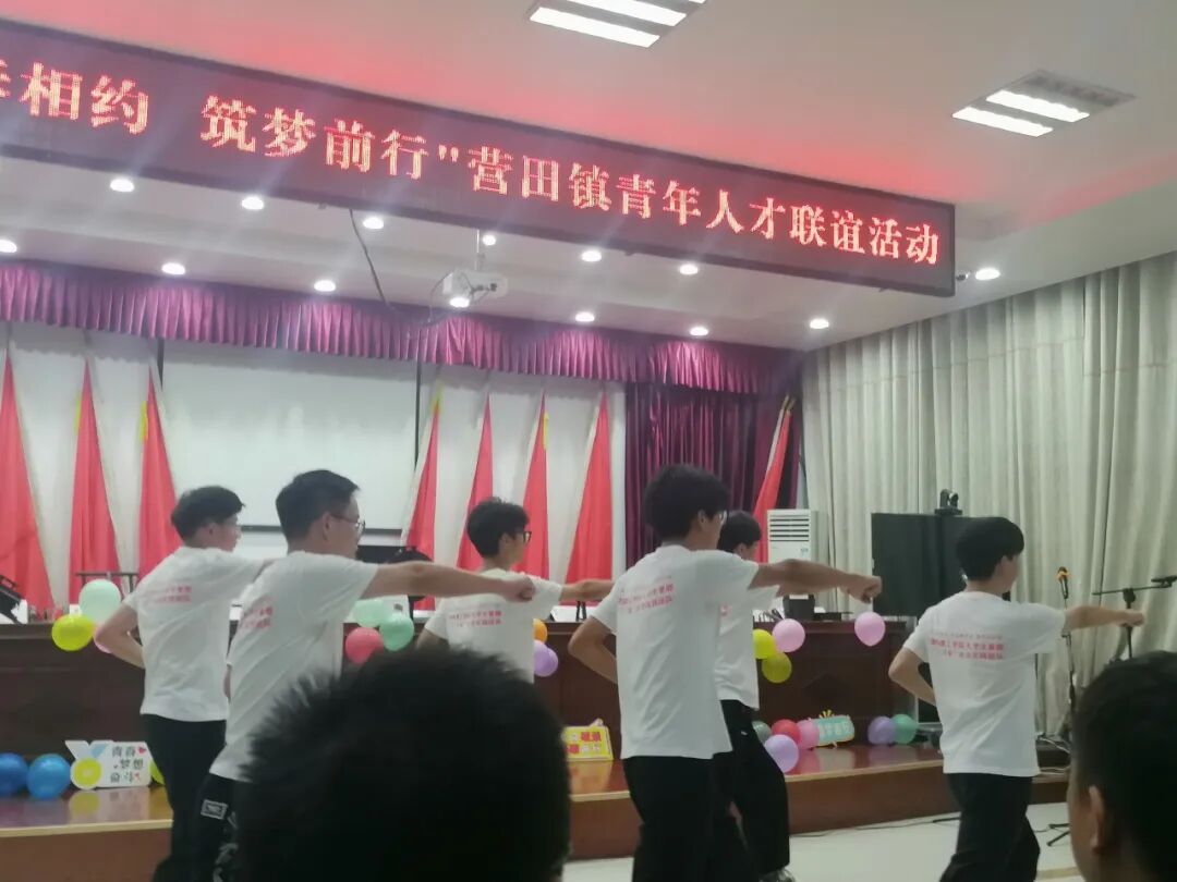 为展现我院师生风采,回报“三下乡”活动期间营田村政府,居民的盛情款待。机械工程学院机巧善工实践团于7月13日在营田镇政府举办了“青春相约,逐梦前行”营田镇青年人才联谊晚会,参会的成员有营田镇各领导以及20位青年志愿者。