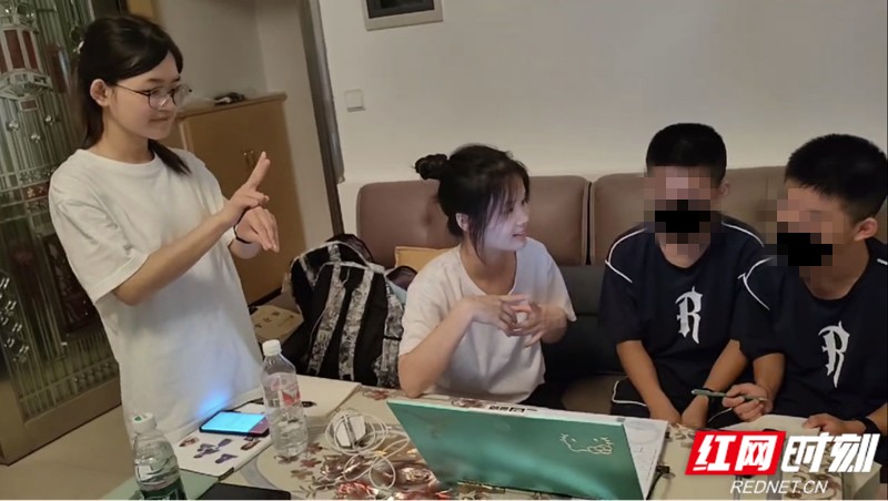 “你叫什么名字,现在读几年级?你有什么爱好吗?”“我读六年级了,我喜欢画画”志愿者和孩子们用手语交流道。在特殊儿童家里,团队志愿者认真走访调研,了解家中具体情况,零距离与孩子们接触,通过文字、多媒体、手语相结合的方式,与他们互动交流,感受他们对被关爱和理解的热切渴望。团队成员前期设计和制定了“一人一案”教学方案,经过专业培训的志愿者们带着“主干辅助”与“课外服务”课程走进各个特殊儿童家庭。
